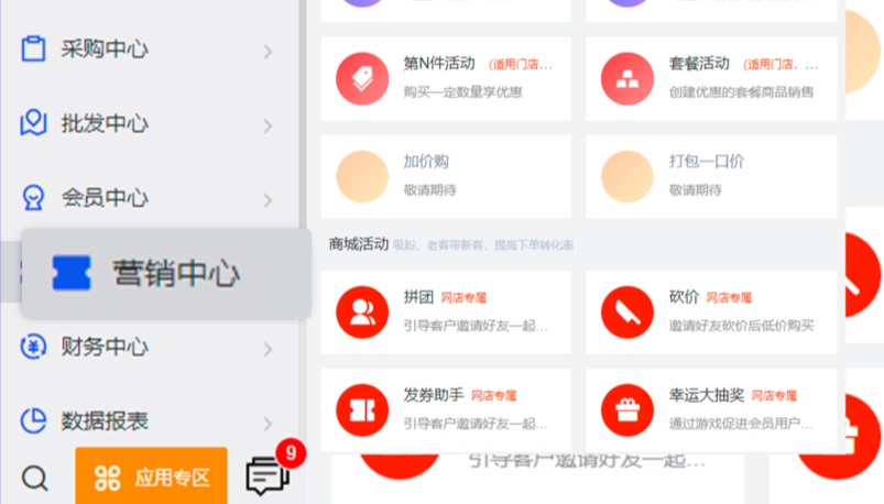 銀響力亮點功能還有會員營銷,功能包括了積分兌換、清倉活動、關注有禮、限時秒殺、到店抽獎、新品推薦、節日促銷、優惠券,對于服裝店來說,非常實用和全面。