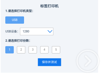 4. 收銀軟件進行標簽打印機設置。1310機型,選擇USB,保存成功。