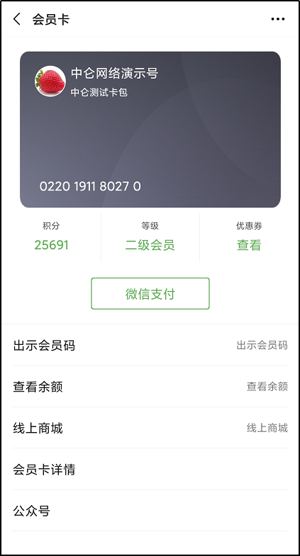 微信會員卡包,是微會員體系的表現形式。微信公眾號、小程序與店鋪的收銀系統打通,形成一套線上線下一體化的會員體系,顧客只需要一個手機號,就可以在線上線下獲得購物積分、會員權益。而且,會員卡包是放在微信里面的,在“微信-我的-卡包里”,就可以找到會員卡,顧客會感覺非常正式,信任感極強;使用起來也非常的方便。對商家而言,這種會員管理體系,有助于吸納新會員,同時提高老會員的粘性,是更完善的一套管會員系統。